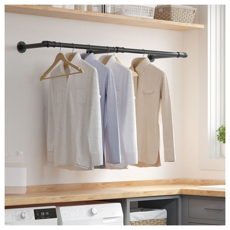 Elegantné a praktické riešenie pre každú domácnosť – tento čierny oceľový vešiak na stenu dodá vášmu interiéru moderný vzhľad a zároveň ponúka dostatok priestoru pre vaše oblečenie. Vhodný do predsiení, spální a šatníkov, kde oceníte jeho univerzálnosť a štýl.