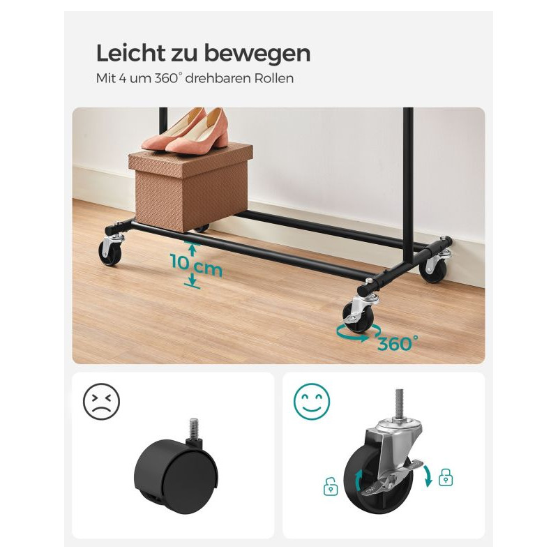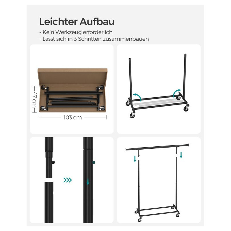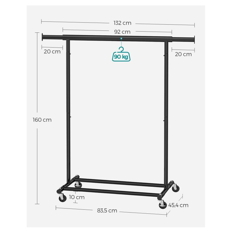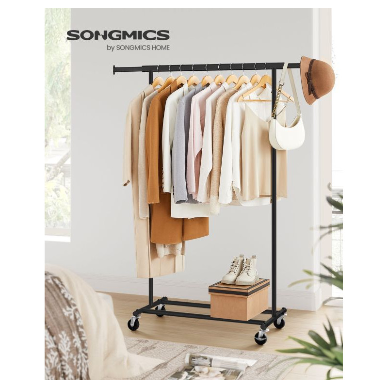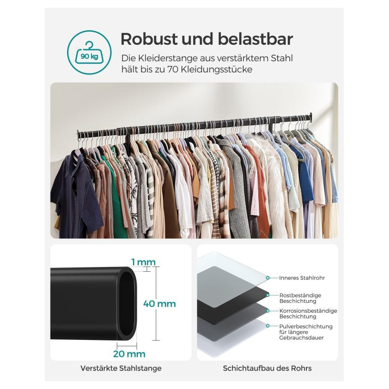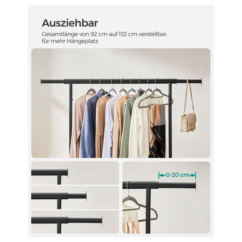 Vytvorte si dokonalý prehľad vo svojej šatníku s týmto priestranným vešiakom na oblečenie. Rozťahovateľná horná tyč ponúka priestor na kabelky a šály, zatiaľ čo elegantný čierny dizajn sa perfektne hodí do každého interiéru.
