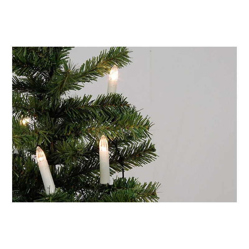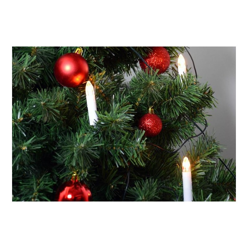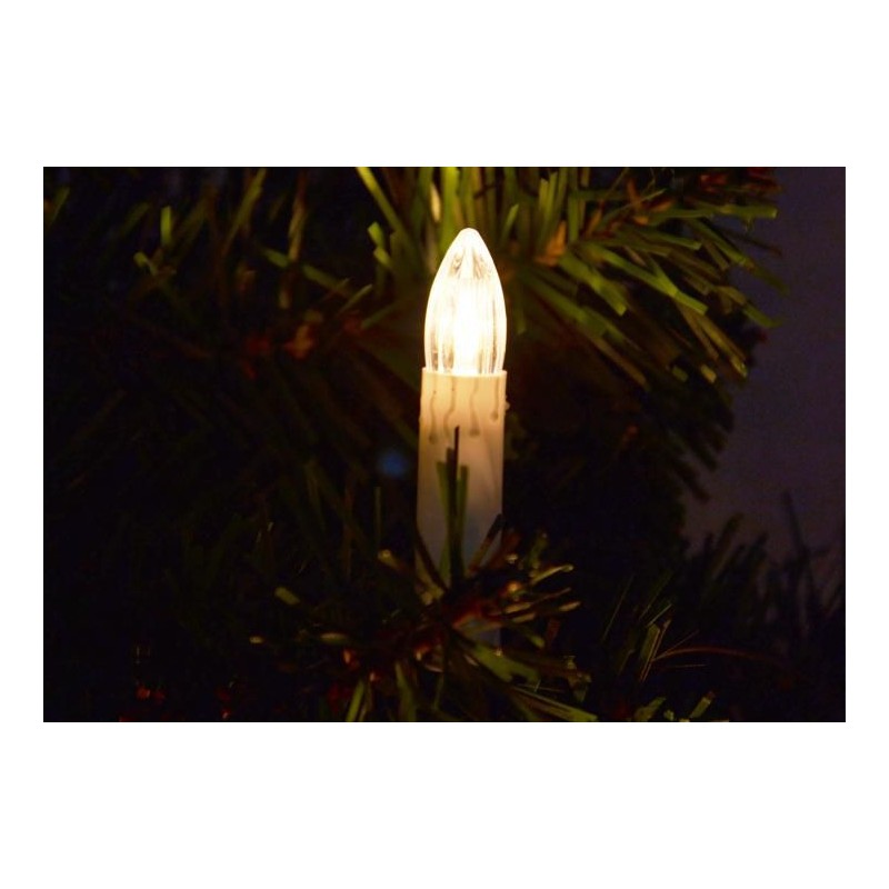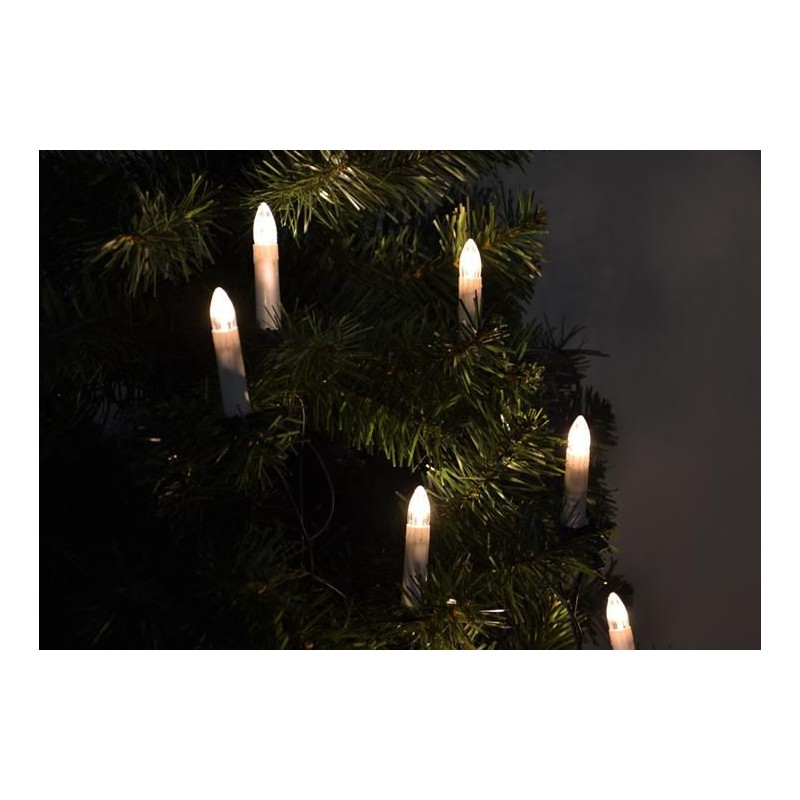30 sviečok ožiari Váš vianočný stromček najlepším svetlom. Osvetlenie sa na strom pripevňuje prostredníctvom kolíkov. Vzdialenosť medzi svetlami je asi 40 cm. Skúšobná trieda ochrany IP20 zaručuje vašu bezpečnosť. Dekorácia s veľkosťou sviečky cca 9 cm (s klipom), celkovou dĺžkou 12,90 m a zeleným káblom je ideálna pre Vaše Vianoce, ale tiež vhodná ako dekorácia pre svadby, oslavy narodenín a iné slávnosti. LED svetelná reťaz vhodná iba pre interiéry.