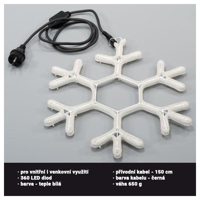 Veľká snehová vločka je ideálna ako dekorácia do okien, ale je možné ju použiť aj na dvere a steny. Možno ich používať v interiéri aj exteriéri. Osvetlenie v neónovom dizajne. Testovaná trieda krytia IP44 zaisťuje bezpečnosť aj pre vonkajšie použitie.