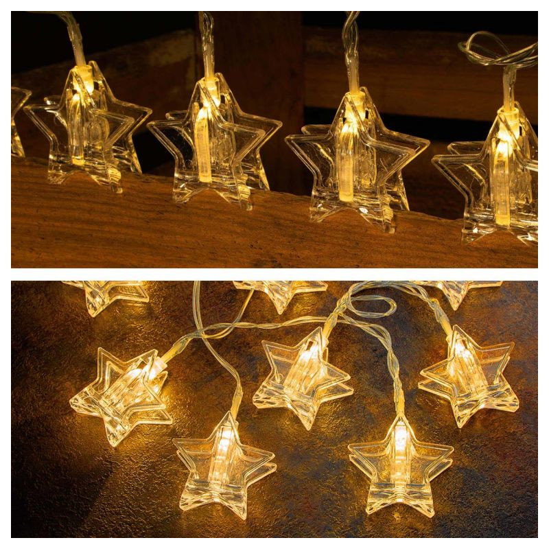 Toto osvetlenie s priehľadnými hviezdami je vhodné nielen ako vianočná dekorácia, môžete ho tiež využiť na rôzne oslavy a slávnostné udalosti. Nastavte si svoje vlastné svetelné akcenty po celý rok a vyzdobte si dom, zimnú záhradu alebo spoločenskú miestnosť. Možnosti využitia nie sú nijako obmedzené. Určite oceníte aj praktický klip, ktorý umožňuje individuálne pripevnenie hviezd. Vďaka napájaniu na batérie nie ste závislý na zásuvkách a svetelnú reťaz môžete umiestniť kamkoľvek v miestnosti. Táto pôsobivá svetelná reťaz sa skladá z 10-tich teplých bielych LED diód, ktoré vytvárajú jedinečnú atmosféru.