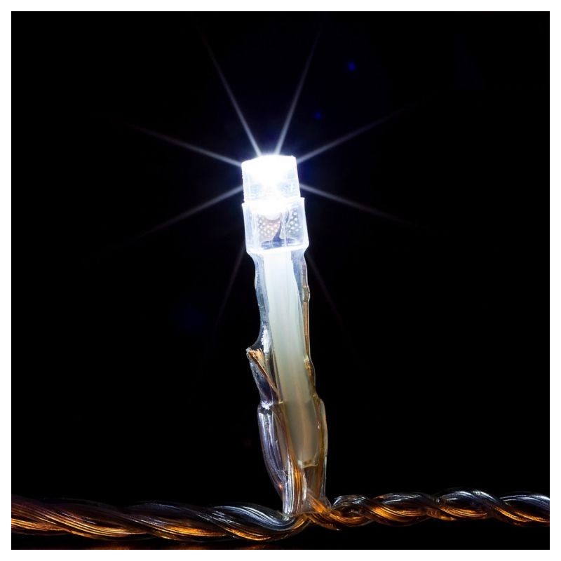 Svetelná reťaz vhodná pre vnútorné aj vonkajšie použitie - na okno, dom, stromček alebo do chodby. Osvetlenie nie je výhradne určené pre dobu Vianoc, ale môžete ho využiť aj pre osvetlenie Vášho stanu či záhrady počas letných mesiacov. LED diódy sú obľúbenou náhradou za klasické žiarovky. V porovnaní s klasickými žiarovkami LED diódy nevyžarujú teplo, sú odolné voči otrasom a môžete vďaka nim ušetriť takmer 90 % energie, ktoré by ste inak spotrebovali na klasické žiarovky. Priemerná životnosť LED diódy je 2 000 hodín svietenia (normálna žiarovka cca 1 000 hodín v závislosti na svietivosti). LED reťaz spĺňa nemecké normy, je na ňu vystavený certifikát bezpečnosti GS a spĺňa stupeň krytia IP 44 (pre vonkajšie použitie). Bez blikajúcej funkcie.