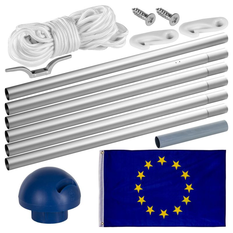 Stožiar FLAGMASTER® vyrobený z hliníka je ideálnym pútačom do Vašej záhrady. Vlajkový stožiar sa skladá zo šiestich zásuvných prvkov a ľahko sa inštaluje - stačí jednoducho zasunúť do seba a vložiť do držiaka, ktorý je súčasťou balenia a ktorý je tiež vhodný na zabetónovanie. Celková dĺžka vrátane držiaka je približne 6,5 m. Vďaka zásuvnému systému sa môže takisto meniť výška stožiara: 210 cm, 310 cm, 410 cm, 510 cm alebo 610 cm.