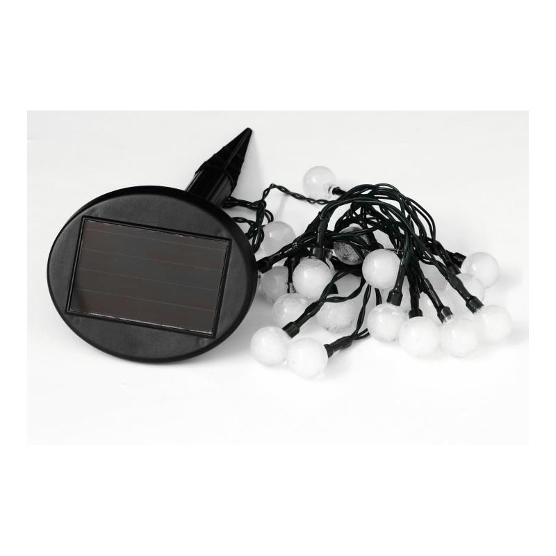 Tento světelný řetěz s 20 LED světýlky Vám vytvoří působivé světlo bez přívodu kabelu ve Vaší zahradě. Kuličky mají průměr cca 2,2 cm a rozsvítí se automaticky při stmívání. Perfektní na balkón, zahradu nebo terasu. Životnost solární lampy je přes 6.000 hodin.
