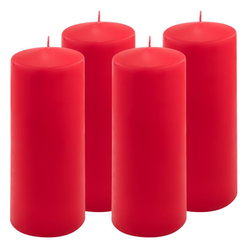 Sada stĺpových sviečok, 20 cm, Ø 7,5 cm, červená, 4 ks