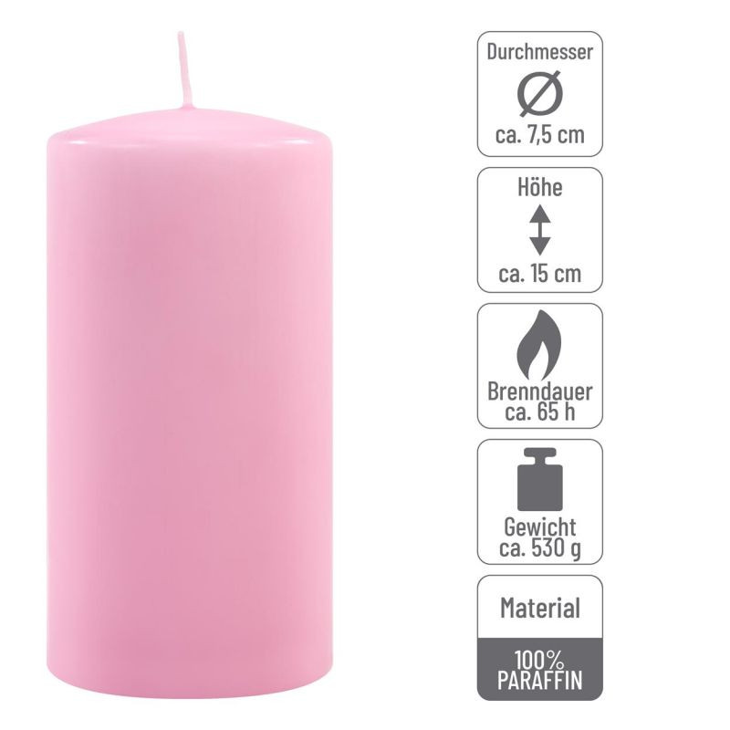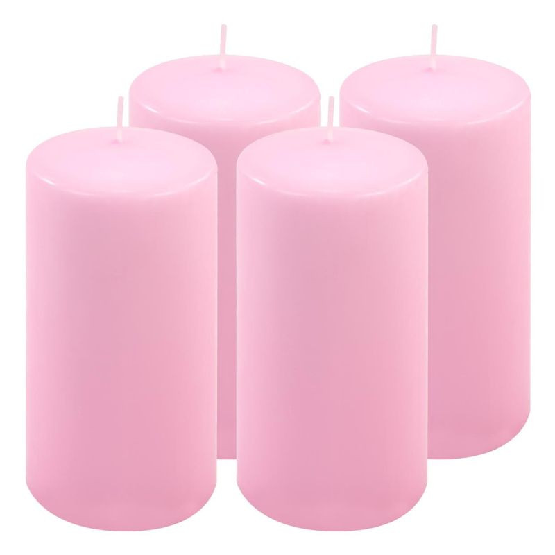 Sada stĺpových sviečok, 15 cm, Ø 7,5 cm, ružová, 4 ks