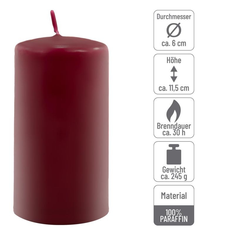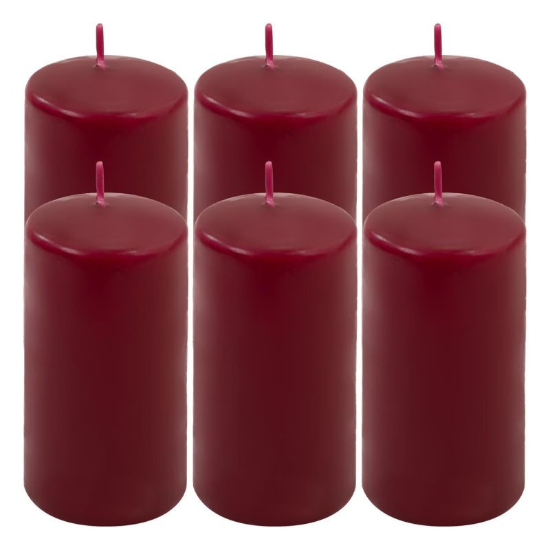 Sada stĺpových sviečok, 11,5 cm, Ø 6 cm, vínová, 6 ks