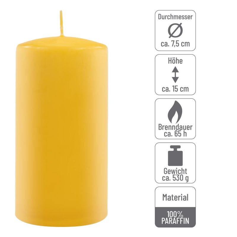 Sada stĺpových sviečok, 15 cm, Ø 7,5 cm, žltá, 2 ks