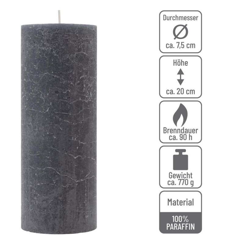 Antracit parafínová sviečka rustikálna 20 cm, 90 h, sada 2ks