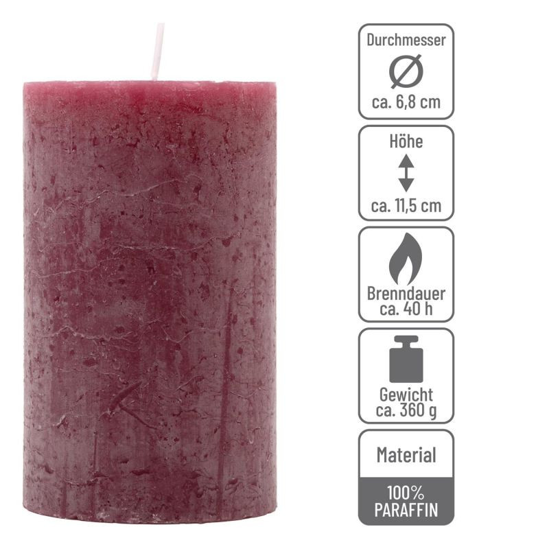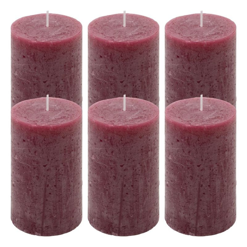 Bordó parafínová sviečka rustikálna 11,5 cm, 40 h, sada 6 ks