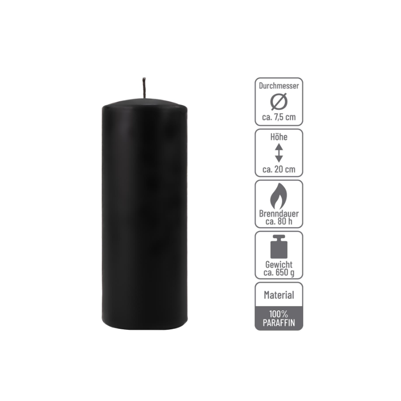 Rozjasnite každý okamih jemným, upokojujúcim svetlom čiernych stĺpových sviečok. Ich nadčasový vzhľad a hlboká farba dodajú vášmu slávnostnému stolu, narodeninovej oslave alebo večernému posedeniu nádych elegancie a štýlu. Vďaka ich neutrálnej vôni si môžete vychutnať čistú atmosféru bez rušivých parfumov.