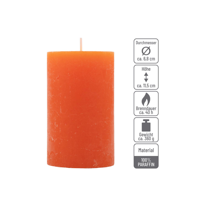 Vytvorte útulnú a slávnostnú atmosféru s touto sadou 12 oranžových rustikálnych sviečok. Ich teplý odtieň a tradičný tvar dodajú vášmu domovu alebo slávnostnému stolu príjemné a elegantné svetlo, ideálne na narodeniny, svadby, oslavy a rodinné stretnutia. Sviečky sú dekoratívne aj funkčné a zaručujú príjemný vizuálny zážitok.