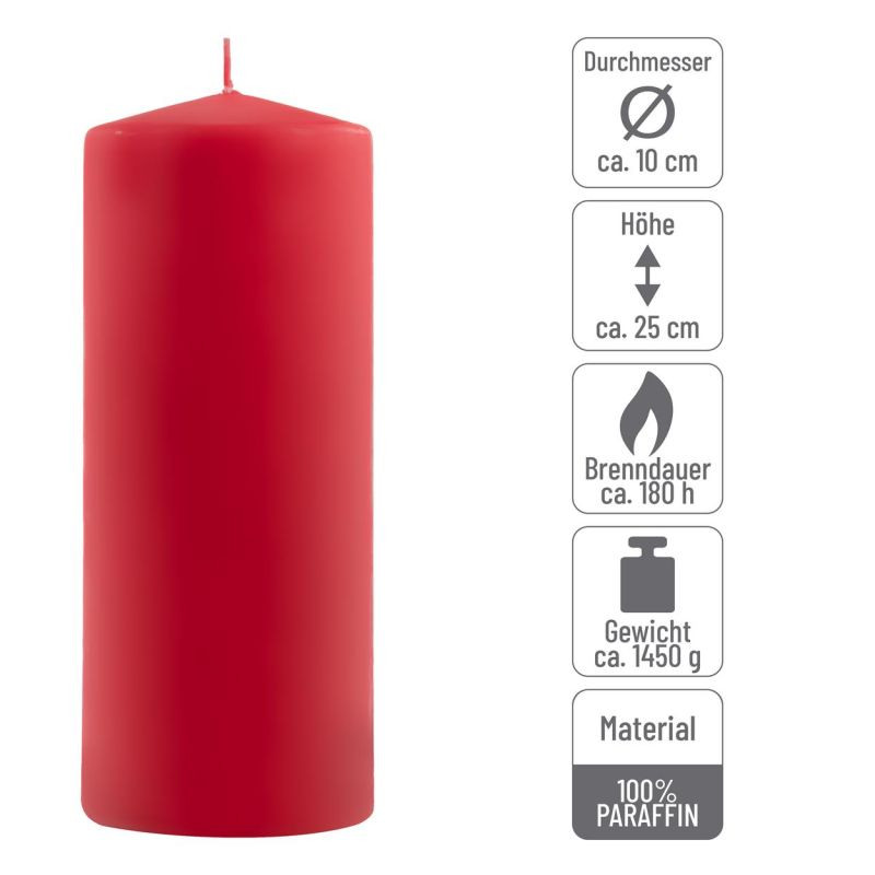 Sada stĺpových sviečok, 25 cm, Ø10 cm, červená, 2 ks