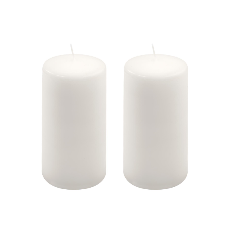 - sviečky: 2× biele stĺpové sviečky 15 cm × 7,5 cm