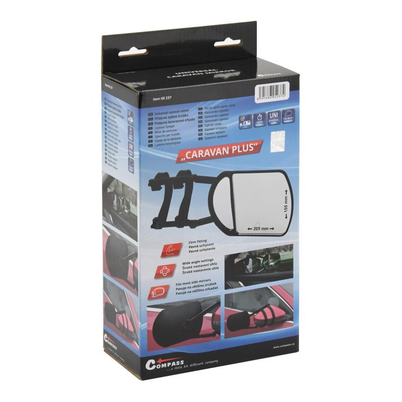 Zrkadlo je vhodné takmer pre všetky typy vozidiel, pripevnenie na existujúce spätné zrkadlo je jednoduché a rýchle. Vďaka gumovým upínačom zrkadlo nevibruje a pevne drží na mieste. Možno použiť ako pre ľavú tak aj pre pravú stranu. Neobmedzuje funkciu existujúceho zrkadla, uľahčuje sledovanie prevádzky za vozidlom aj sledovanie mŕtveho uhla vďaka doplnkovému zrkadlu s vlastným nastavením uhla. Ideálny pomocník na jazdu s prívesom či karavanom.