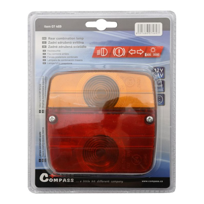 Svietidlo je vybavené obrysovým, brzdovým, smerovým svetlom a osvetlením ŠPZ. Univerzálne použitie zaisťuje možnosť pripevniť pomocou priložených skrutiek na ľubovoľné miesto na ľavú aj pravú stranu. Balenie obsahuje štandardné 12 V žiarovky. Na výmenu žiaroviek je potrebné odskrutkovať celý predný kryt svietidla. Pre použitie pri 24 V systéme je potrebné nahradiť 12 V žiarovky za 24 V žiarovky.