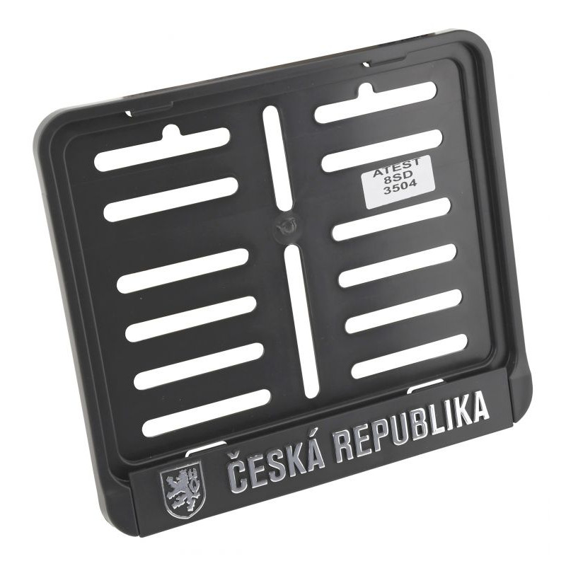Podložka je opatrená plastickým 3D emblémom leva a nápisom Česká republika s chrómovaným povrchom. Podložka je vybavená spodnou lištou so zaisťovacími zámkami a celým radom montážnych otvorov, vďaka ktorým je jej upevnenie naozaj univerzálne.
