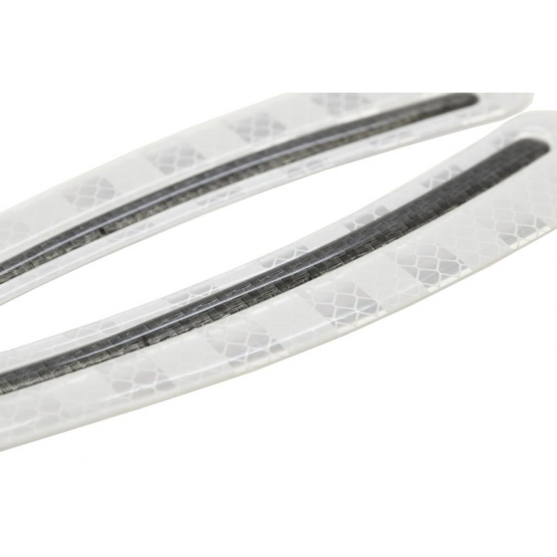 Chránič dverí s reflexnými vlastnosťami so silnou lepiacou časťou a odolným povrchom. Samolepka je vhodná na nalepenie na očistené neporézne povrchy. Lepenie je možné aj na mierne tvarované povrchy. Prilepenie je ľahké a rýchle.
