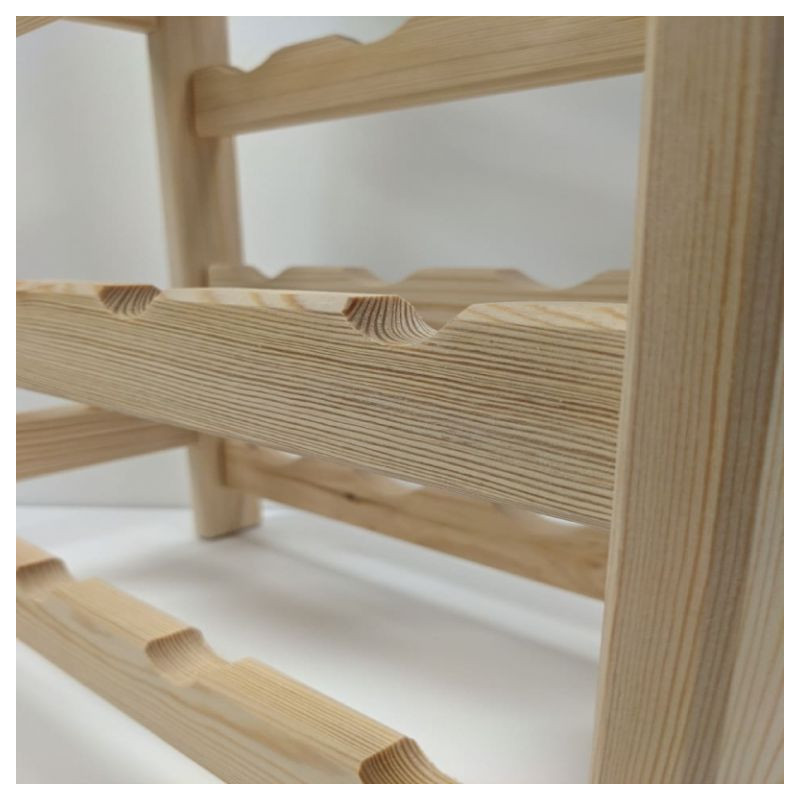 Stojan na víno je vyrobený v Českej republike, zabezpečuje riadne starnutie vína - hrdlo fľaše smeruje dole, takže korkový uzáver je zaplavený vínom, nevysychá, a tým víno nedegraduje. Všetky hrany sú zaoblené. Stojan pojme vždy bezpečne všetky fľaše, ktoré do neho uložíte.