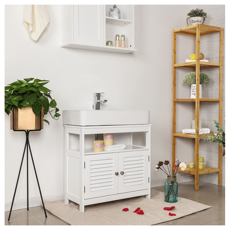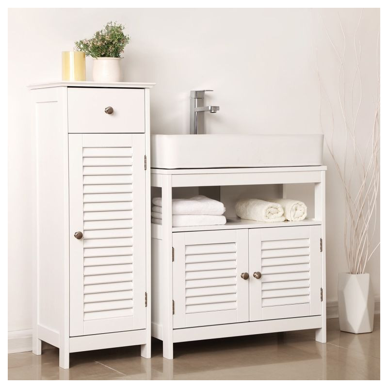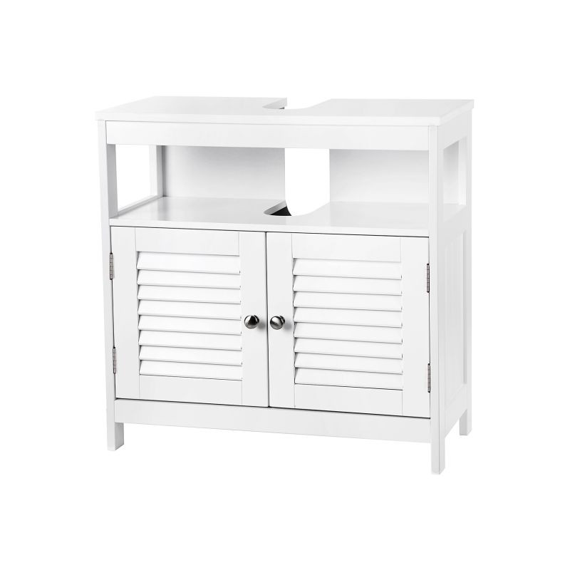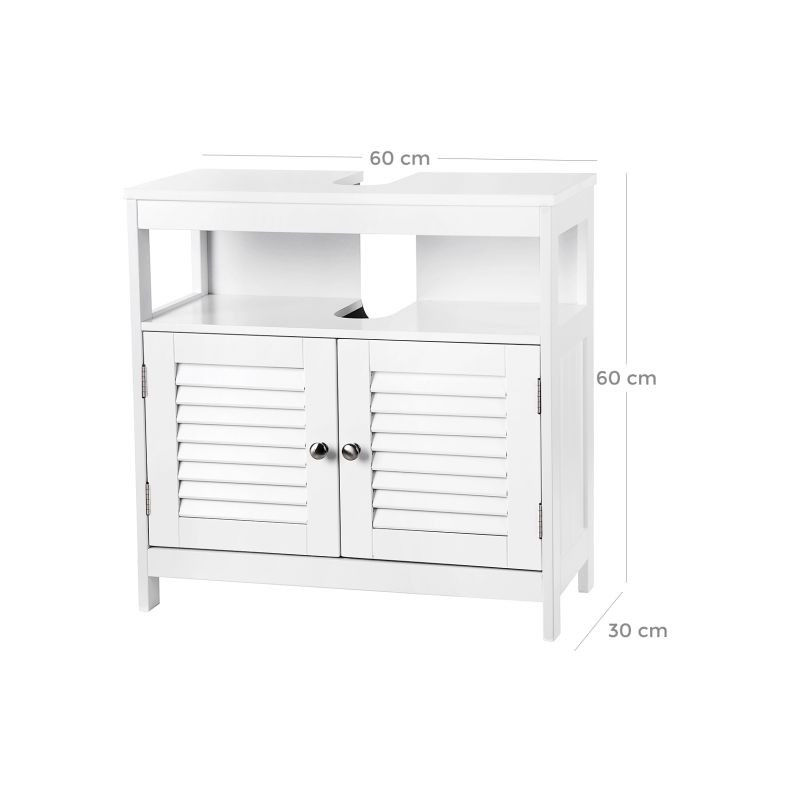 Vnesiete do svojej kúpeľne svieži a útulný štýl s touto elegantnou umývadlovou skrinkou. Vďaka otvorenému a uzavretému úložnému priestoru budete mať vždy po ruke všetko, čo potrebujete, zatiaľ čo vaše uteráky a drobnosti zostanú chránené pred prachom a zvedavými pohľadmi. Biely dizajn sa hodí do každého interiéru a vytvára pocit čistoty a pokoja.
