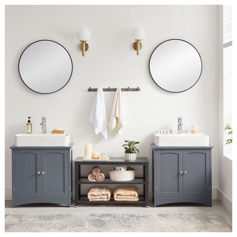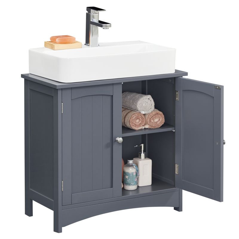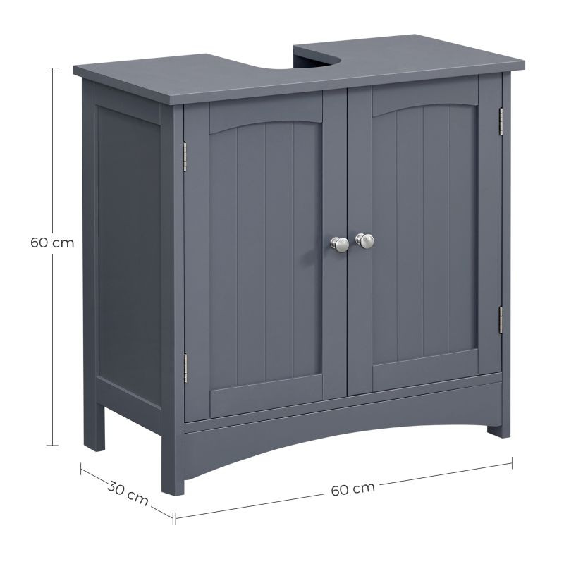 Elegantná sivá skrinka pod umývadlom dodá vašej kúpeľni moderný vzhľad a zároveň poskytne dostatok úložného priestoru pre všetky vaše nevyhnutné veci. Vďaka premyslenému vnútornému usporiadaniu môžete ľahko usporiadať svoje uteráky, kozmetiku a čistiace prostriedky. Odolný materiál zaručuje dlhú životnosť a jednoduchú údržbu, čo ocení každá domácnosť.