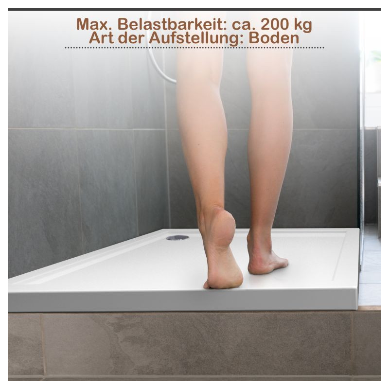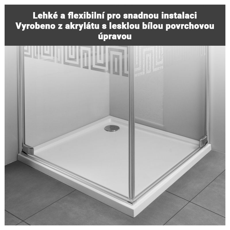 Tento konkrétny model sprchovej vaničky je vyrobený zo spoľahlivého akrylátu a má hĺbku 5 cm, čo umožňuje ľahší prístup do sprchy. Štýlová a elegantná sprchová vanička s veľmi tenkým profilom. Má ľahko čistiteľný lesklý povrch. Tento model je treba zdvihnúť 12 cm od podlahy. Obojstranná inštalácia - podstavec je možné namontovať podľa potreby.