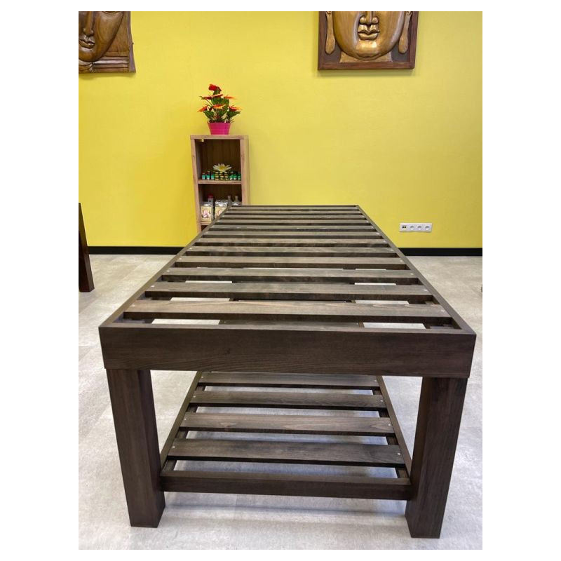 Pevné dřevěné masážní lehátko je ideální jako stabilní vybavení prostorů masérů, fyzioterapeutů, pracovníků v oblasti beauty a wellness průmyslu. Šířka masážního lehátka 90 cm a délka 200 cm nabízí zákazníkovi velkou a pohodlnou plochu na ležení.