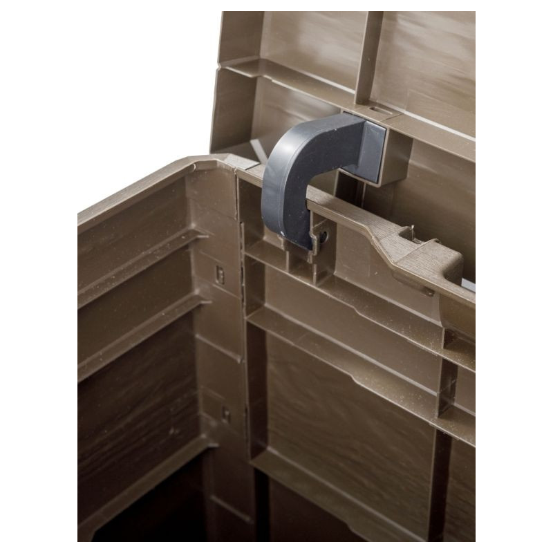 Užívajte si záhradu bez neporiadku vďaka tomuto praktickému úložnému boxu s rustikálnym dizajnom. Všetko potrebné budete mať vždy po ruke a zároveň chránené pred dažďom či slnkom. Elegantná hnedá farba a imitácia dreva oživia každý vonkajší priestor.