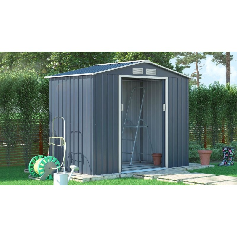 Záhradný domček ARCHER využijete na uskadnenie napr. záhradného náradia, bicykla, kosačky, príslušenstva k bazénu atď. Záhradný domček v modernom dizajne sa hodí do každej záhrady. Domček má dvojité posuvné dvere a vysoký vstupný otvor, teda do neho budete mať pohodlný prístup. Oceľová, pozinkovaná konštrukcia s ventilačnými mriežkami. Bez podlahy.