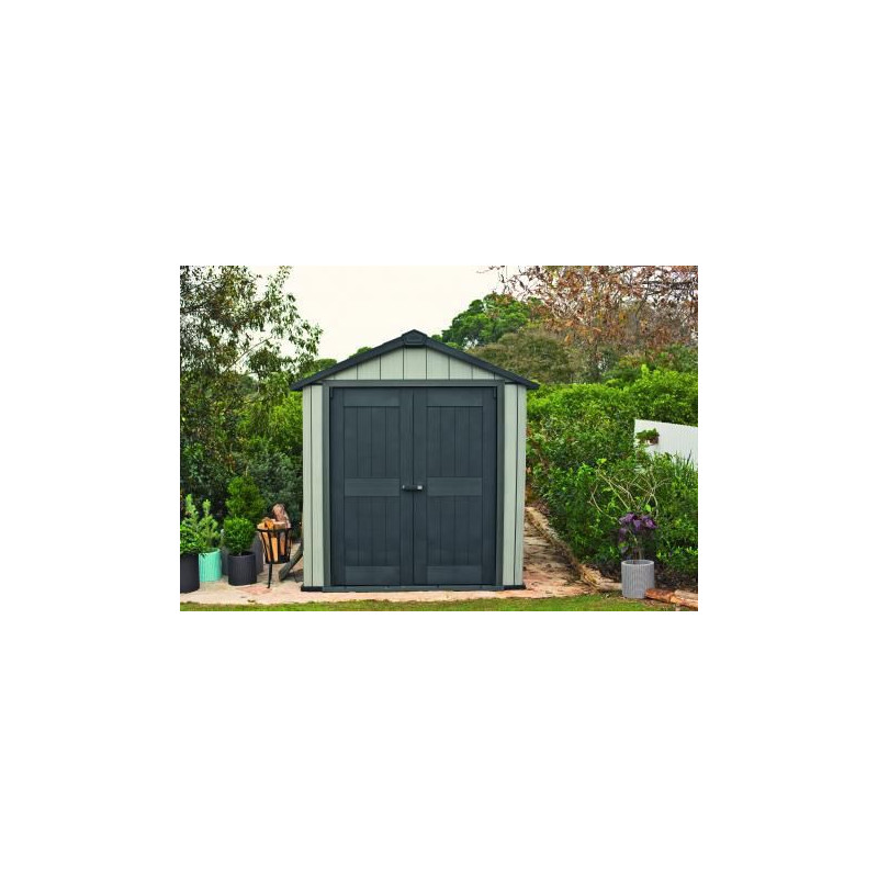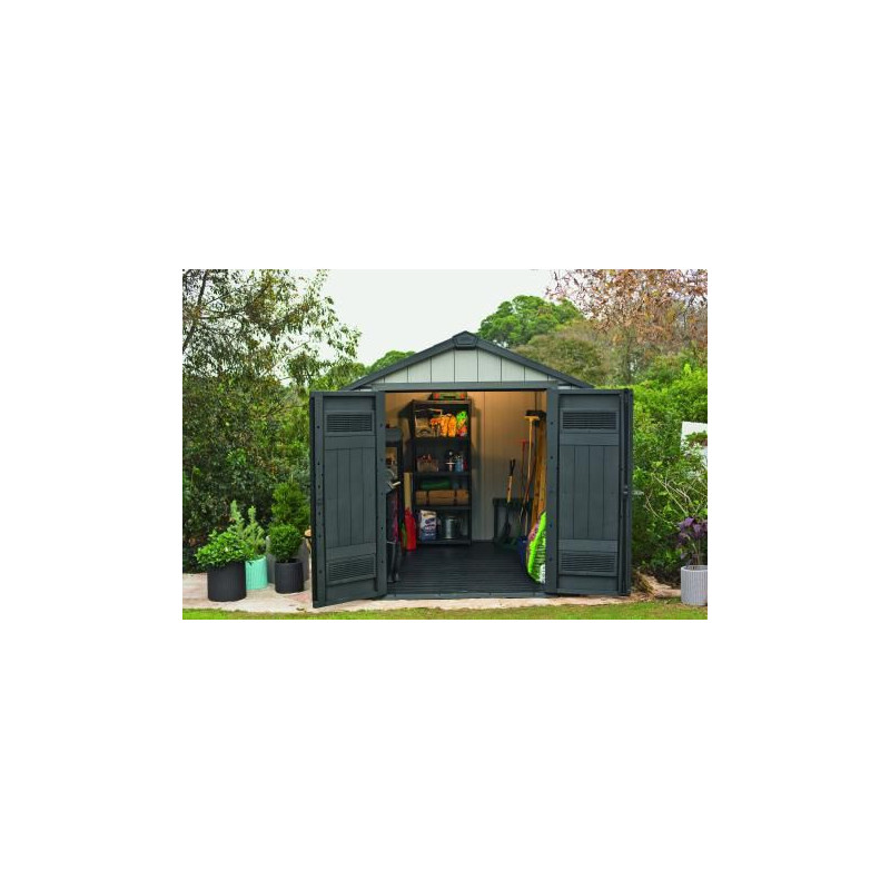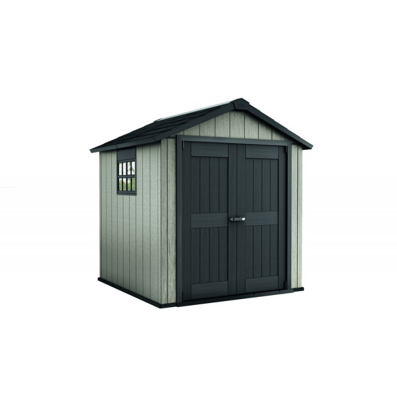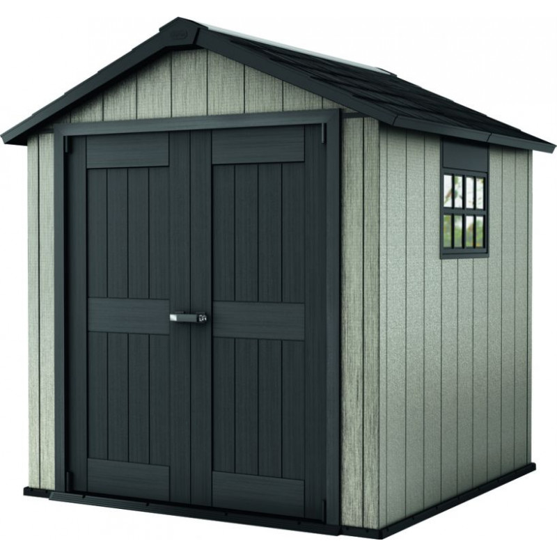 Jedná sa o bezúdržbový plastový domček. Domčeky predstavujú skvelé a inteligentné riešenie úložného priestoru na Vašej záhrade. Vďaka veľkému oknu, ktoré zaistí dostatok svetla, sa v domčeku môžete pohodlne pohybovať. Ventilačná mriežka privádza čerstvý vzduch - uložené veci tak nevlhnú. Domčeky sa vyznačujú kvalitou, designom a extrémnou stabilitou vďaka kovovým výstužiam. Výhody: veľmi jednoduchá montáž, krásny design, kvalita, domček je ventilovaný, bezúdržbový, odolný voči vode, snehu aj UV žiareniu.
