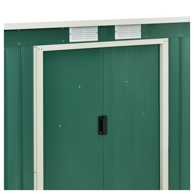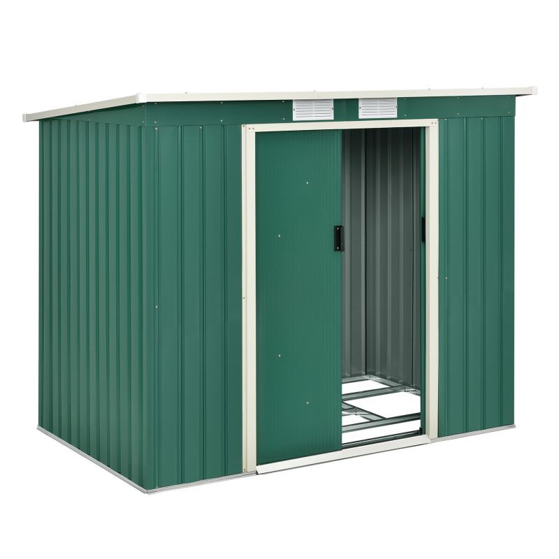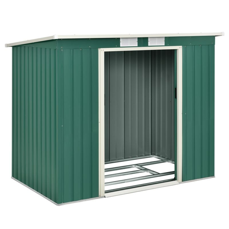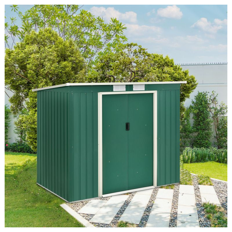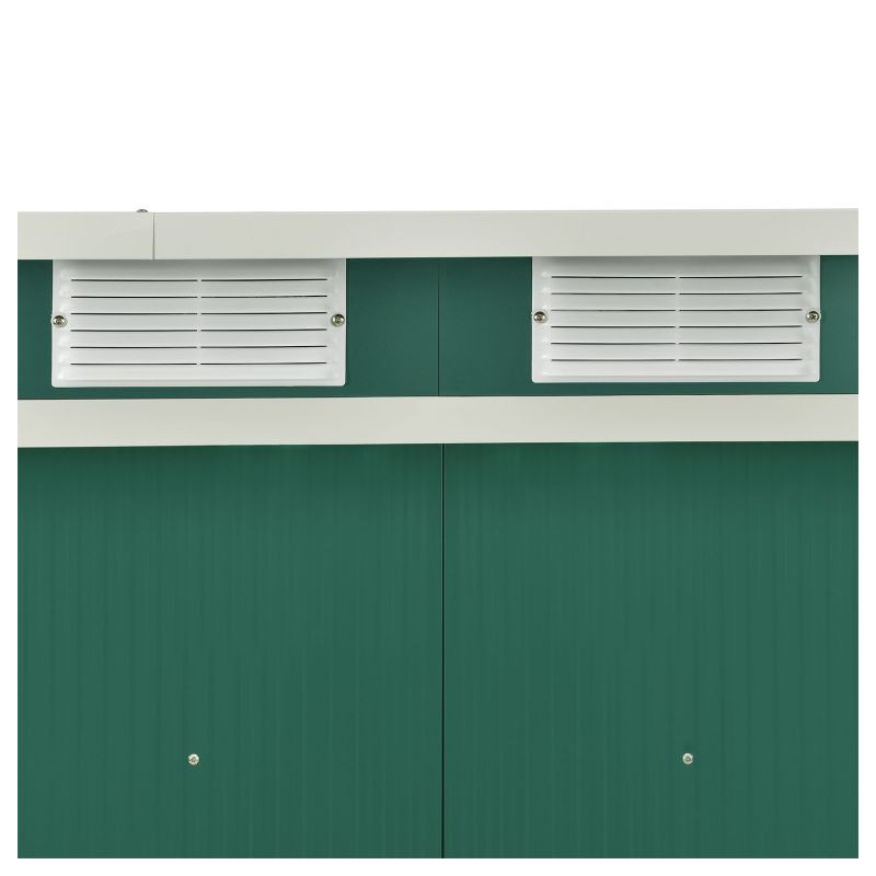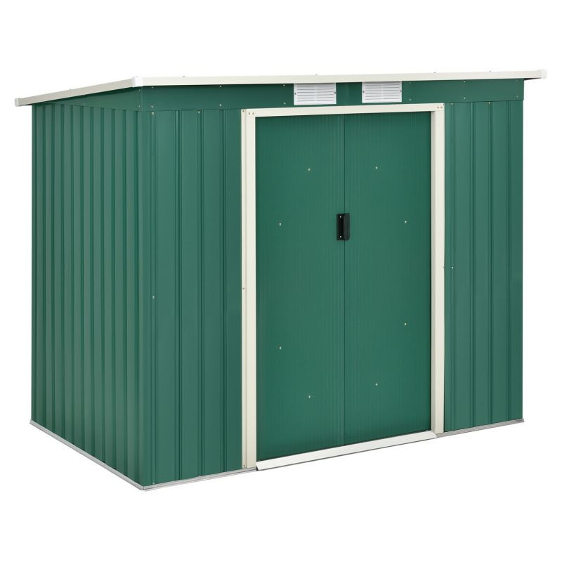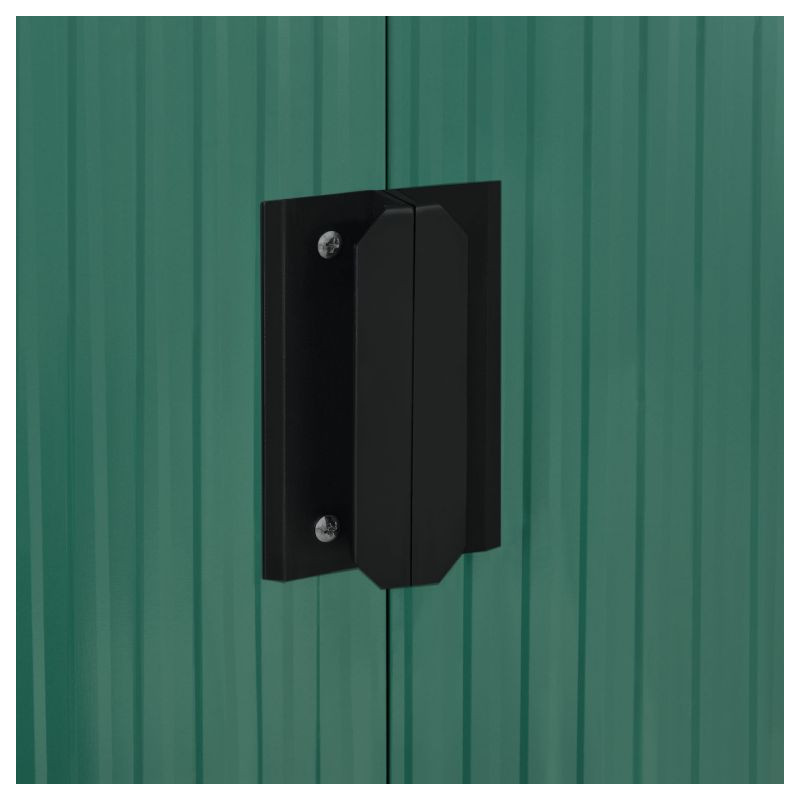Vychutnajte si poriadok a pokoj vo vašej záhrade vďaka tejto priestrannej kôlni na náradie. Moderný tmavozelený dizajn sa hodí do každého prostredia a poskytuje bezpečné miesto pre vaše náradie aj v zime.