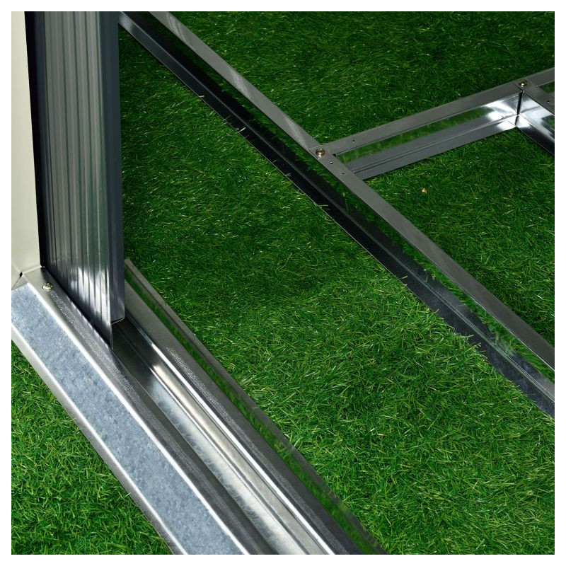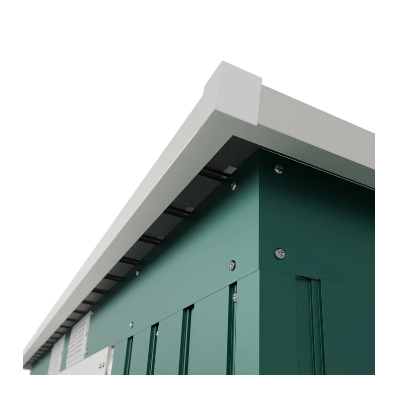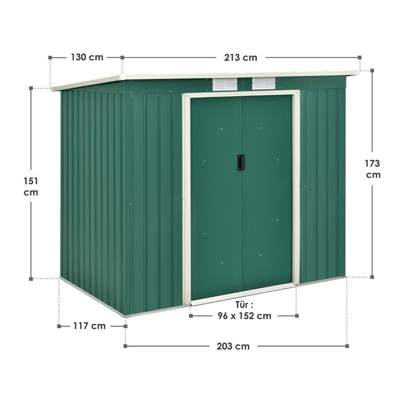 Robustná konštrukcia z pozinkovaného plechu zaručuje dlhú životnosť a minimálnu údržbu. Pultová strecha a základný rám uľahčujú montáž a chránia obsah pred vlhkosťou a nečistotami.
