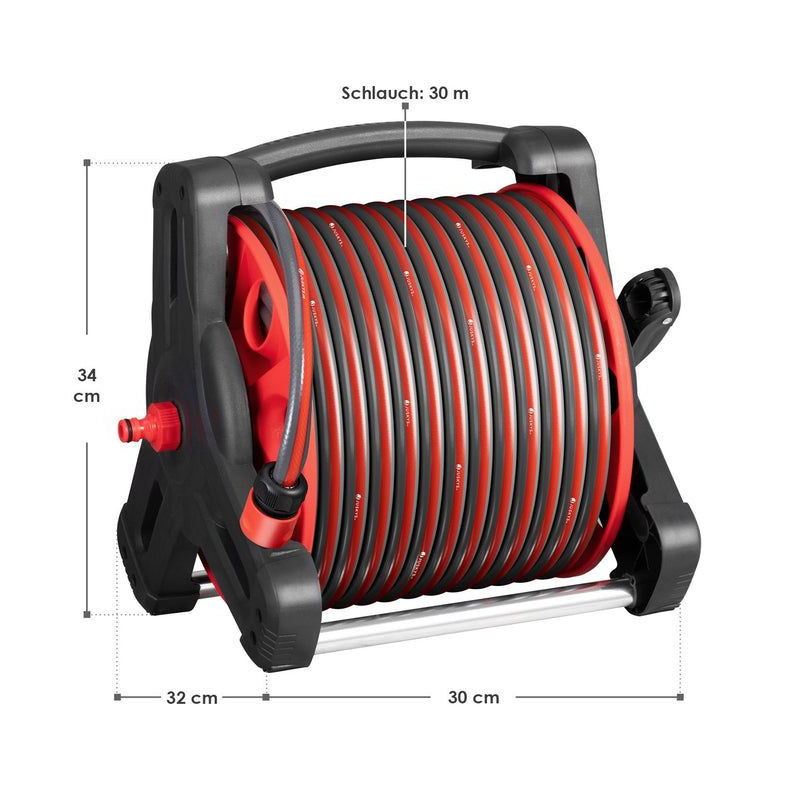 Stabilná konštrukcia z PVC zaručuje odolnosť a jednoduchú údržbu. Hadica s dĺžkou 30 m a prívodná hadica s dĺžkou 2 m zabezpečujú veľký dosah. Inštalácia je rýchla vďaka priloženým adaptérom a nástennému držiaku. Navijak je ľahký a ľahko prenosný, ideálny na každodenné použitie.