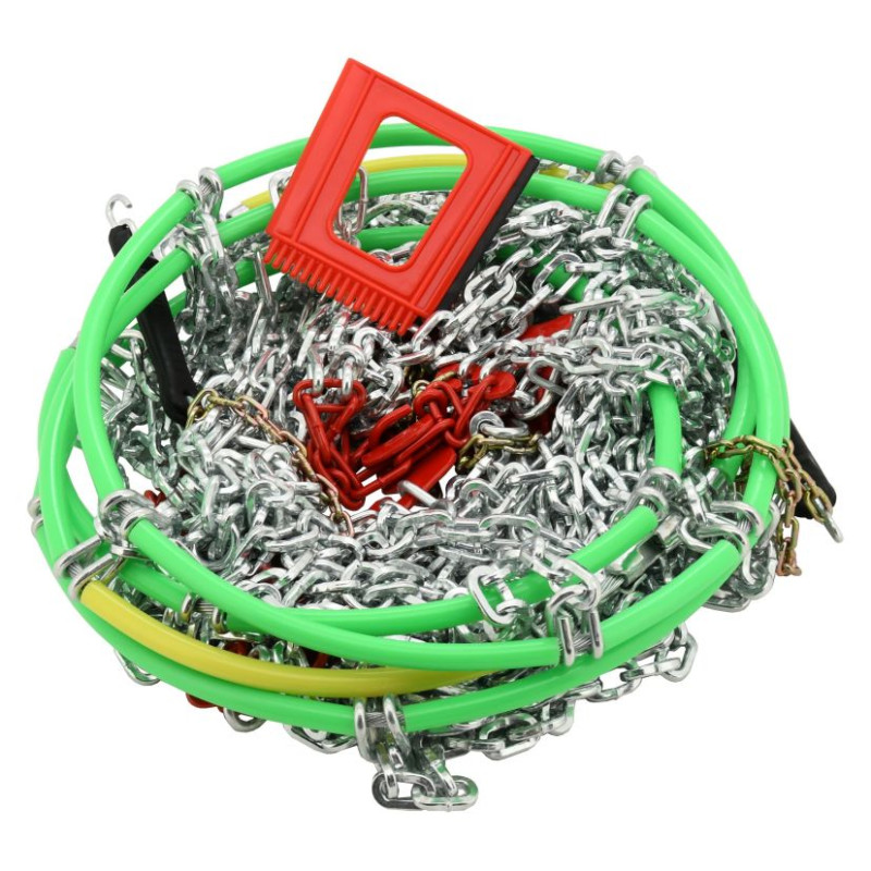 Štvorhranné články 27 x 16 mm sú prispôsobené proti pretáčaniu reťaze, čím výrazne zvyšujú záber kolesa. Sila materiálu 4,5 mm zaisťuje vysokú pevnosť, odolnosť a dlhú životnosť. Reťazová sieť je usporiadaná v špeciálnom tvare „X", zaručujúcom pokojnú a pohodlnú jazdu na zasnežených cestách aj na poľných cestách.