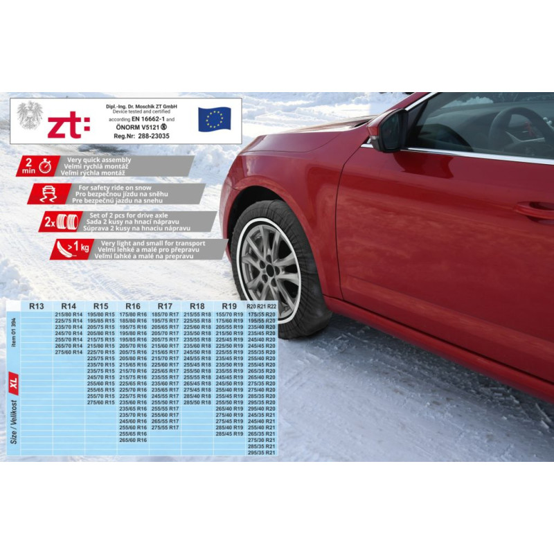 Reťaze sú vyrobené z vysoko odolnej technickej tkaniny a sú vhodné pre všetky osobné vozidlá vrátane vozidiel SUV a vozidiel 4x4. Hlboká štruktúra povrchu zaručuje bezpečnú jazdu na snehu a ľade. Horná strana je vybavená šípkou pre správny smer a orientáciu na pneumatike. Reťaze sa dajú opakovane používať. V porovnaní s bežnými kovovými reťazami textilné reťaze vynikajú nízkou hmotnosťou a dokonalou skladnosťou a nevyžadujú žiadnu špeciálnu údržbu. Po použití stačí opláchnuť nečistoty vlažnou vodou a nechať uschnúť. Vďaka svojim malým rozmerom reťaze nezaberú vo vozidle veľa miesta.